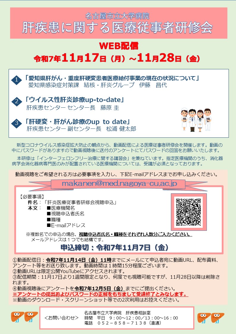 | 名古屋市立大学病院主催 令和3年度 肝炎医療従事者研修会 | |