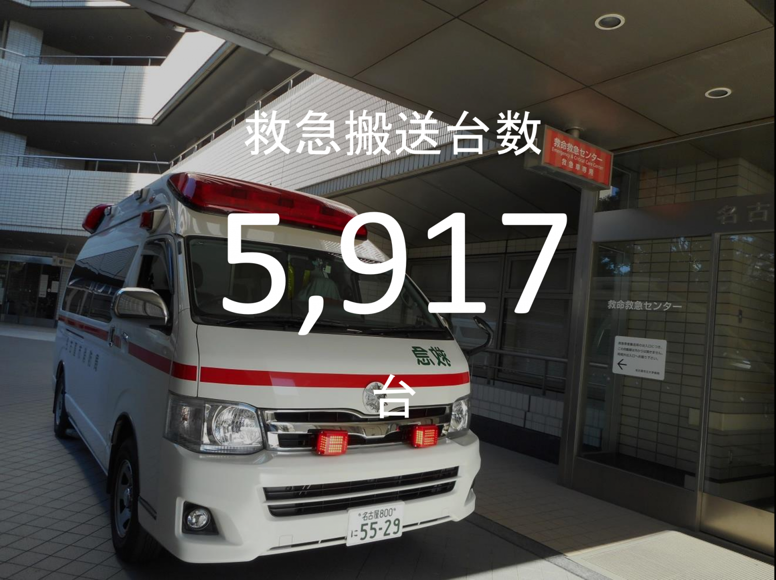 年々著しく増加する救急症例救命救急センターを有す名古屋地域の三次救急指定病院として、一次救急から三次救急まで、令和元年度は年間5,917台の救急搬送を受け入れました。 |