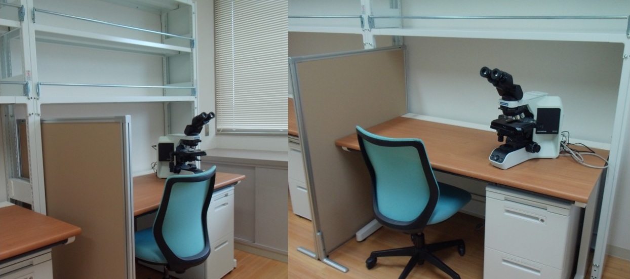 また当医局では、集中して勉強や鏡検出来る個人の作業スペースと専用の顕微鏡を配置しており、