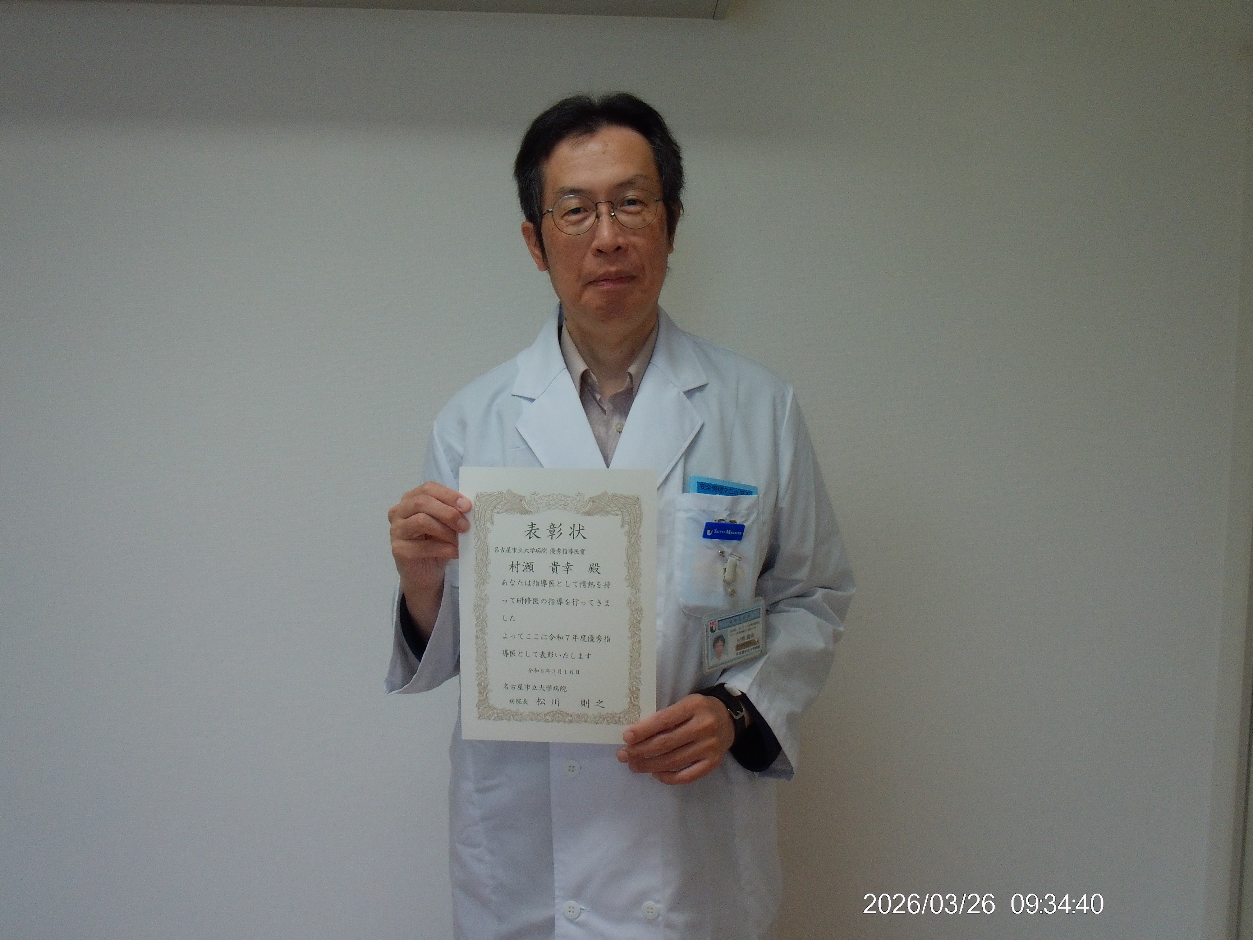 2026年3月に村瀬貴幸准教授が、名古屋市立大学病院から優秀指導医として表彰されました。