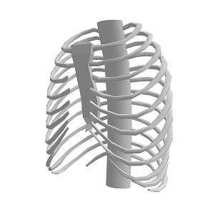 1.前胸部の肋軟骨(肋骨は背骨からはじまり,湾曲しながら前下方に向かいますが,途中から軟骨というやや柔らかい”骨”になっています.)が,おそらく胎児期の後期で一時的に一部の肋軟骨(陥凹の形状から考えると第4肋軟骨〜第7肋軟骨と思われます)が,接続する肋骨よりも速く成長するために肋骨と肋軟骨との間に長さのアンバランスが生じます。最後尾に載せましたが、私の研究の結果では肋軟骨は勿論のこと、漏斗胸の人では肋骨も通常の人よりも早く成長して長くなる可能性が非常に高いことがわかりました。その結果として真ん中の胸骨が左右両方から押されて陥凹するか突出します.陥凹すれば”漏斗胸”になり,逆に突出すると”鳩胸”になります(図1,2,3).