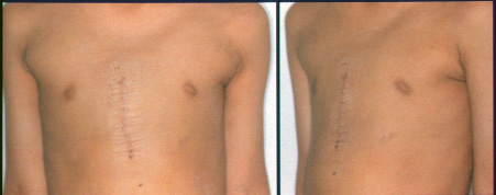 また女性の場合は,乳房が発達してくれば胸の中央の多少の陥凹は男性に比べて問題になりにくいと思われます.従って,女児の場合は男児よりも手術に適する例は大変少ないと考えています.